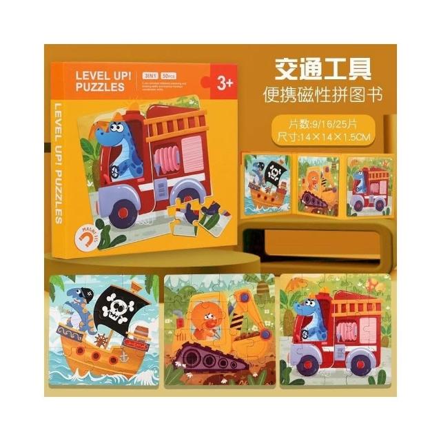 隔日到貨 拼圖書 兒童磁力拼圖書 磁鐵幼兒拼圖書 磁性益智拼圖 進階拼圖玩具 兒童卡通拼圖 動物 恐龍 水果 公主 車