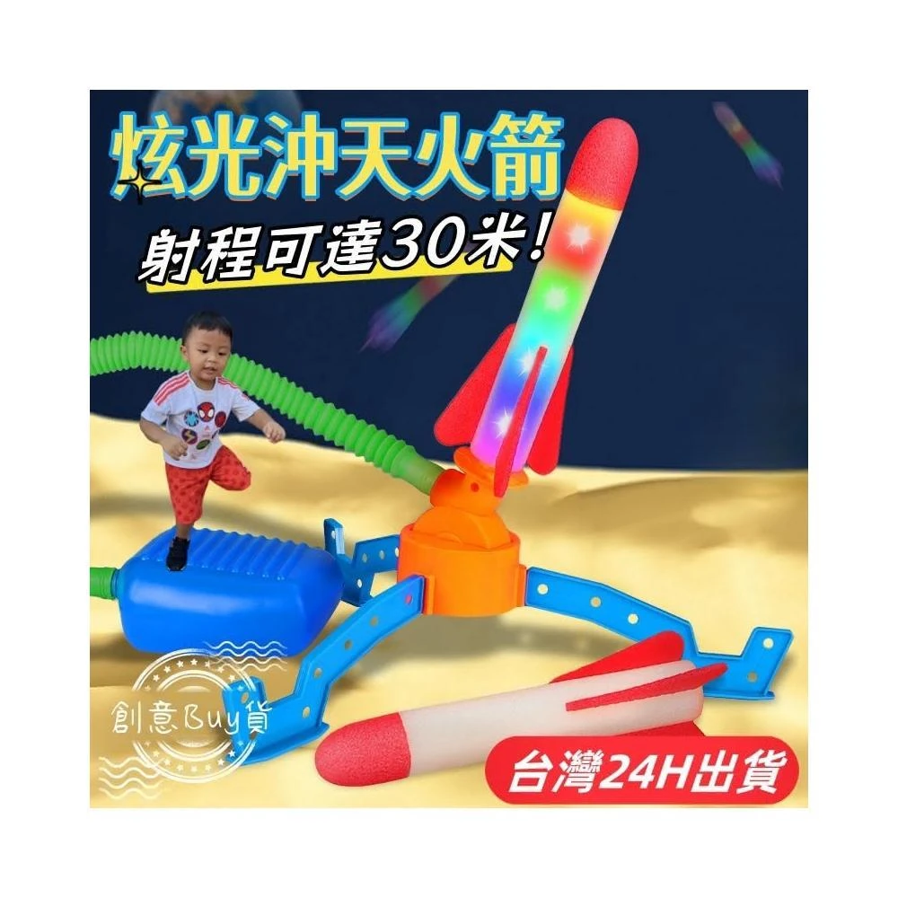 隔日到貨 兒童沖天火箭 發光腳踩火箭 戶外露營 飛天玩具 腳踏空氣火箭炮 親子互動遊戲 1 2 3 4 5歲 感統教具