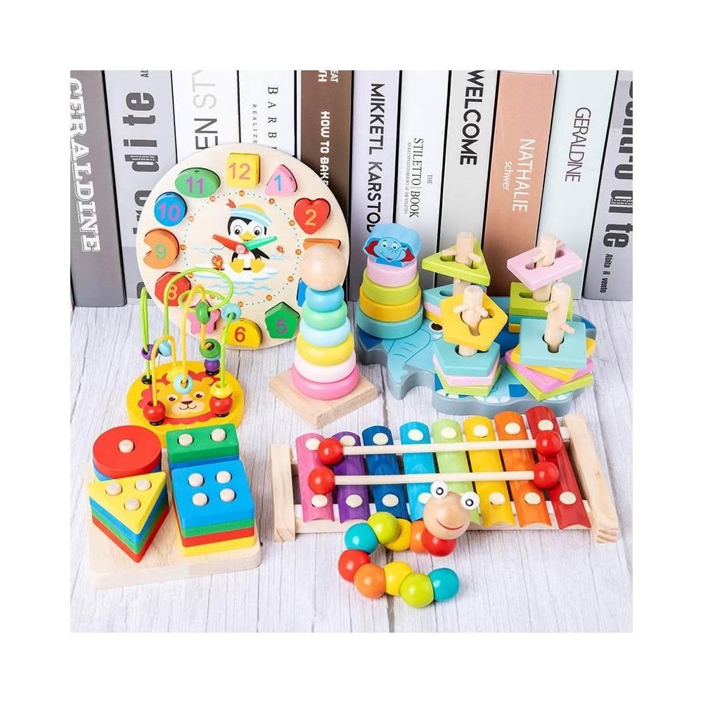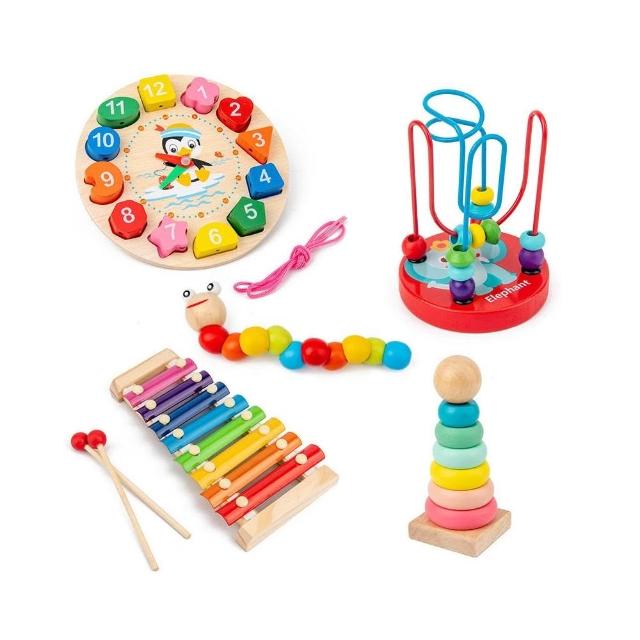 台灣現貨 木製寶寶玩具 嬰幼兒玩具 八音琴 繞珠玩具 串珠遊戲 手抓板 四套柱 時鐘教具 彩虹塔疊疊樂 木質扭扭蟲