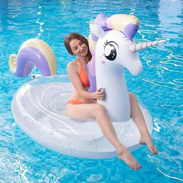 隔日到貨 星星獨角獸泳圈坐騎 彩虹馬泳圈 亮片公主馬 大號獨角獸 成人浮床浮排 造型泳圈 大型游泳圈 超大雙人加厚款