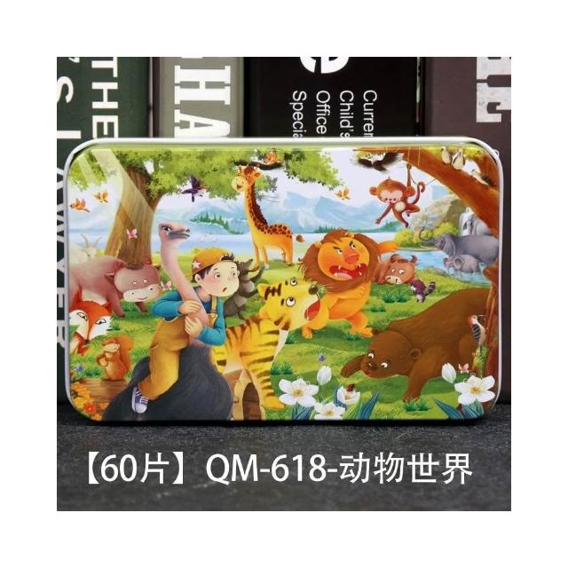 隔日到貨🌈60片兒童益智拼圖 木製鐵盒拼圖 卡通拼圖益智玩具 幼稚園生日分享禮物 美人魚 動物恐龍 交通工具 童話故事