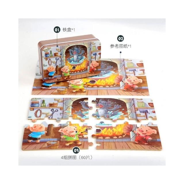 隔日到貨🌈60片兒童益智拼圖 木製鐵盒拼圖 卡通拼圖益智玩具 幼稚園生日分享禮物 美人魚 動物恐龍 交通工具 童話故事