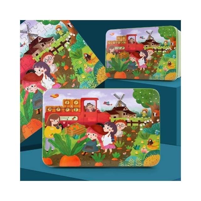 隔日到貨🌈100片鐵盒拼圖 兒童益智拼圖 兒童卡通拼圖 幼兒鐵盒拼圖 平面拼圖教具 親子互動遊戲