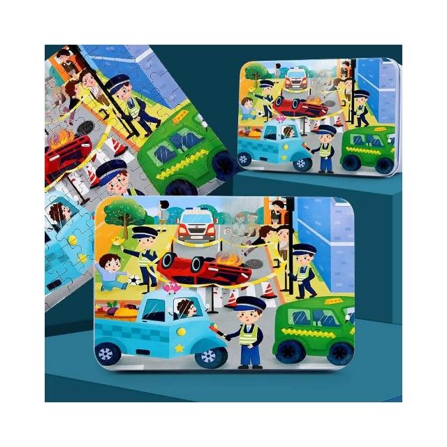 隔日到貨🌈100片鐵盒拼圖 兒童益智拼圖 兒童卡通拼圖 幼兒鐵盒拼圖 平面拼圖教具 親子互動遊戲