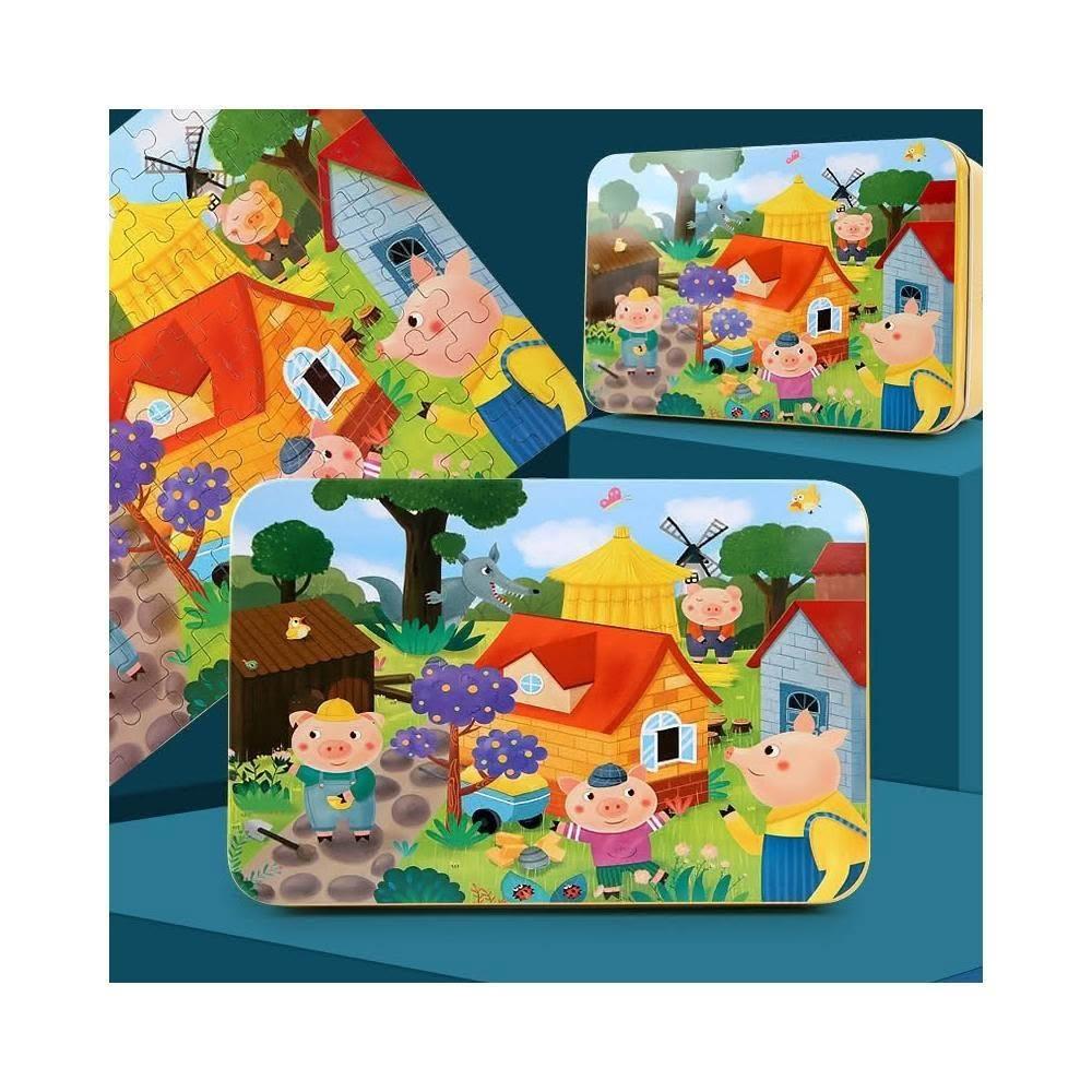 隔日到貨🌈100片鐵盒拼圖 兒童益智拼圖 兒童卡通拼圖 幼兒鐵盒拼圖 平面拼圖教具 親子互動遊戲