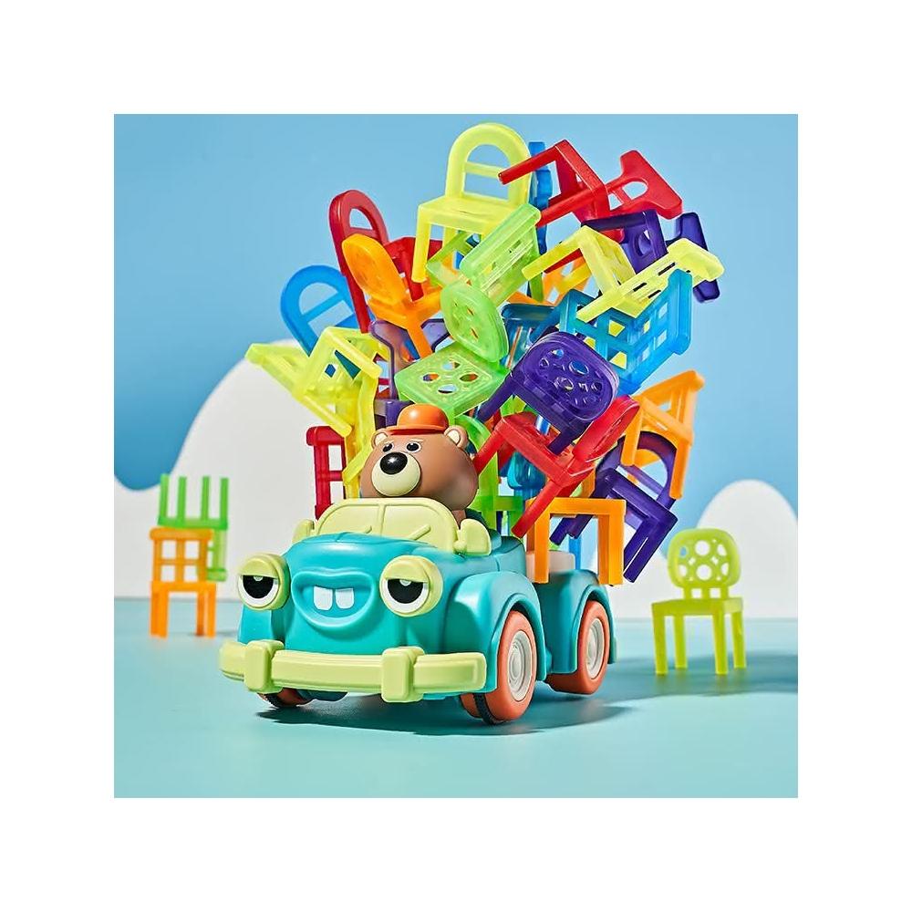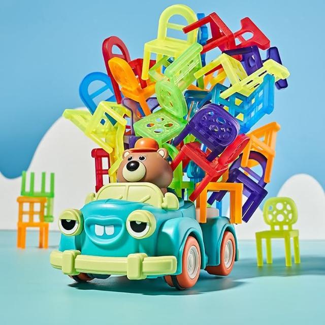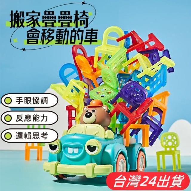 隔日到貨🌈疊疊椅小熊玩具車 椅子疊疊樂 兒童益智玩具 幼兒堆疊積木桌遊 親子互動遊戲 小朋友電動卡車 專注力平衡訓練教具