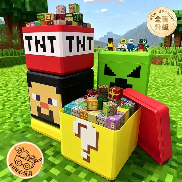 隔日到貨🌈磁力方塊收納盒 磁力片收納箱 積木儲物箱 積木置物桶 玩具整理箱 大容量存放 TNT 幸運 親子互動遊戲