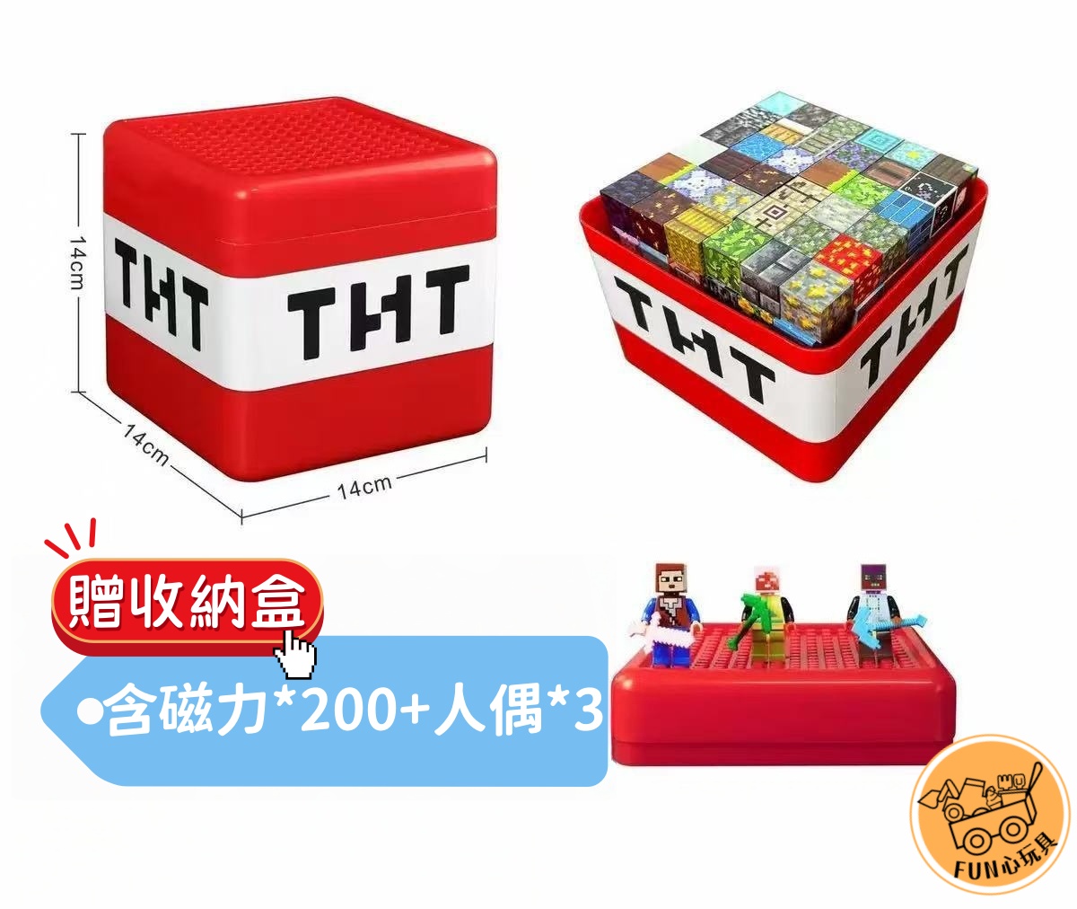 隔日到貨🌈磁力方塊收納盒 磁力片收納箱 積木儲物箱 積木置物桶 玩具整理箱 大容量存放 TNT 幸運 親子互動遊戲