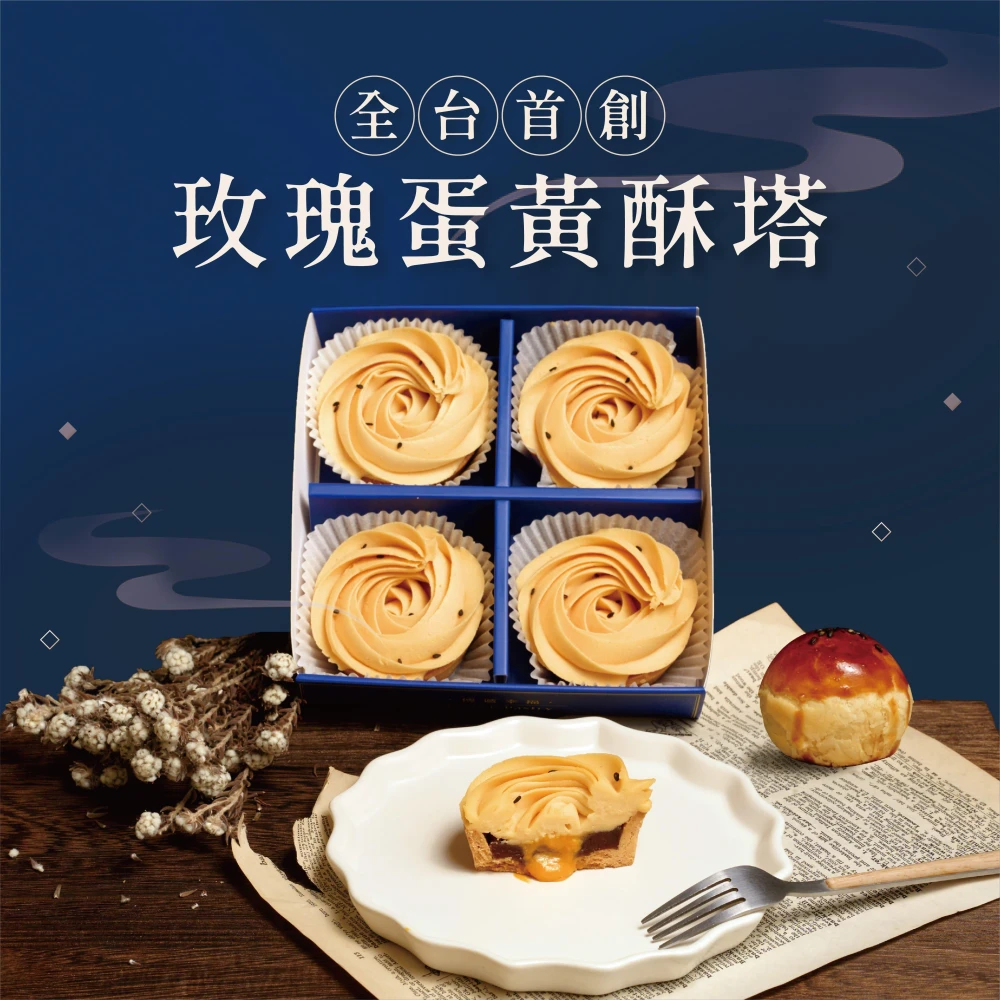 傳遞幸福玫瑰蛋黃酥塔4入/盒《全台首創》(檸檬塔 玫瑰檸檬塔 甜點 下午茶 團購 點心)