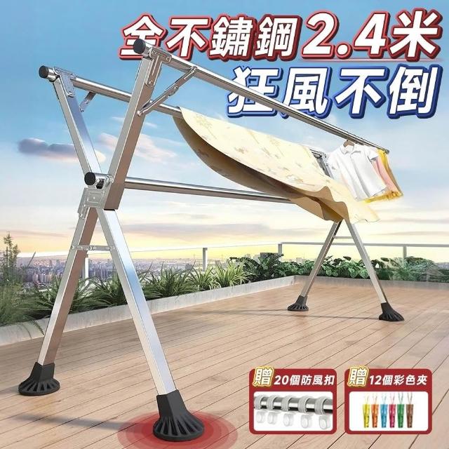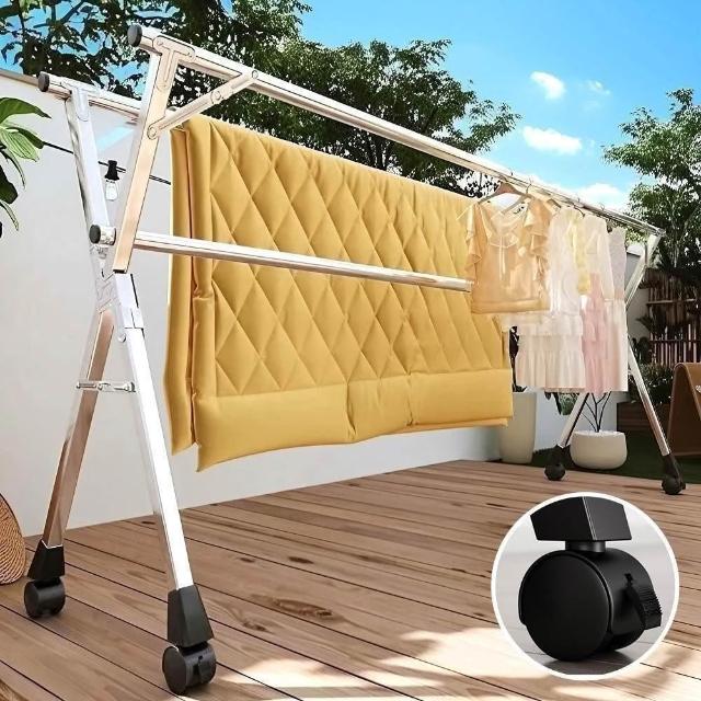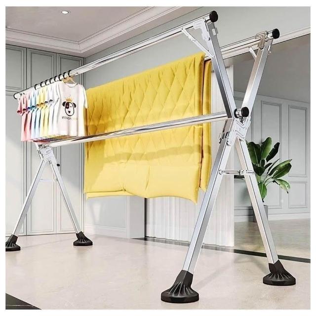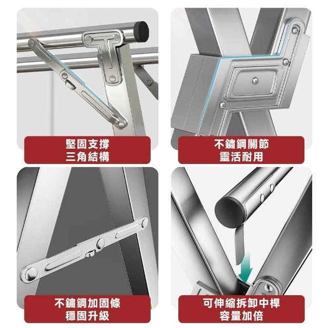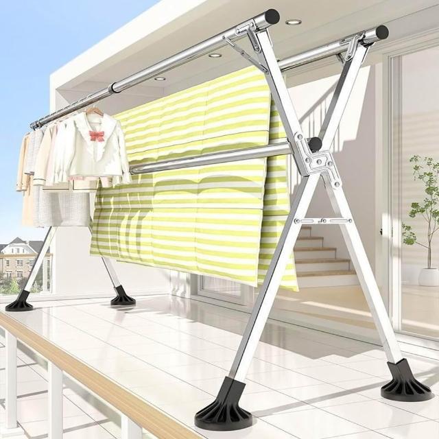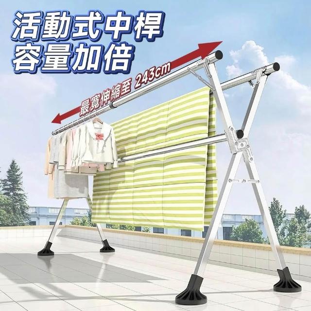 STYLE 格調全不鏽鋼2.4米三桿X型伸縮摺疊曬衣架240x49x130cm-管徑25mm 曬被架 晾曬架 晾衣架