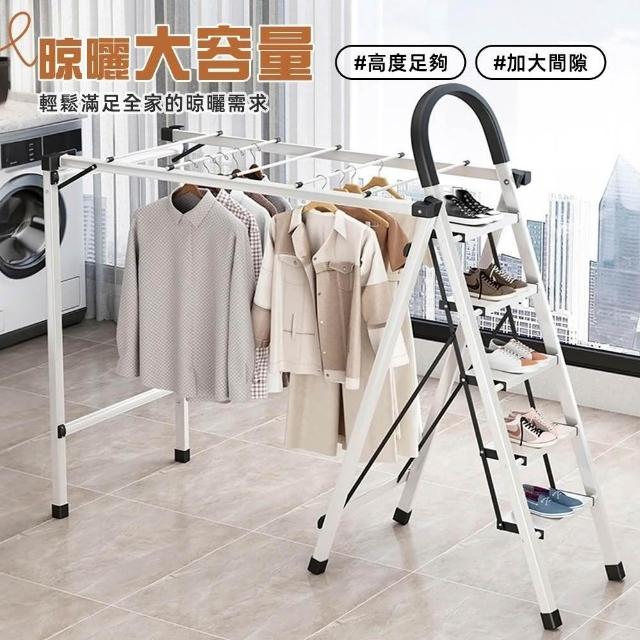 STYLE 格調多功能安全扶手摺疊曬衣梯-4步5步 梯子晾衣架 多功能折疊梯 人字梯 室內鋁梯子 兩用梯
