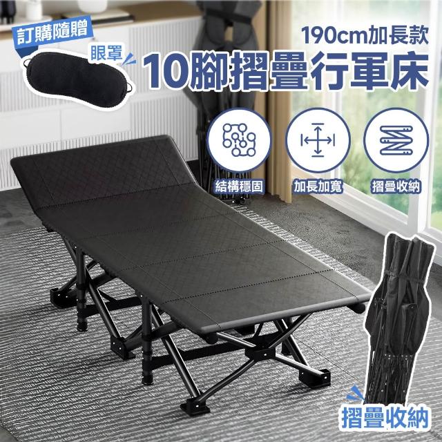 STYLE 格調十腳摺疊可收納行軍床躺椅加長款190x68x38cm 休閒椅 摺疊椅 露營椅 戶外椅