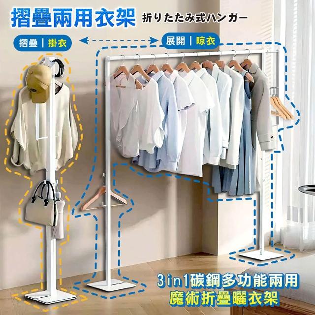 STYLE 格調3in1-碳鋼多功能兩用魔術折疊曬衣架 吊衣架 掛衣架 室內衣架 摺疊晾衣架
