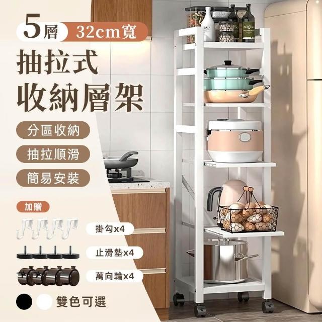 STYLE 格調全碳鋼抽拉式層板廚房置物電器五層架五 寬32cm 蔬果籃 零食櫃 收納架
