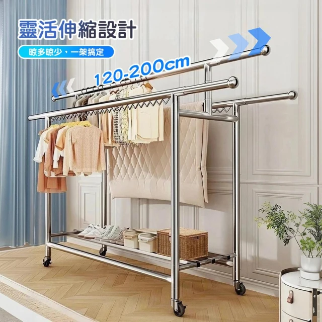 STYLE 格調超荷重三桿H型可折合收納移動式不鏽鋼晾曬衣架-送輪送鞋架 伸縮曬衣架 掛衣架 戶外晾曬
