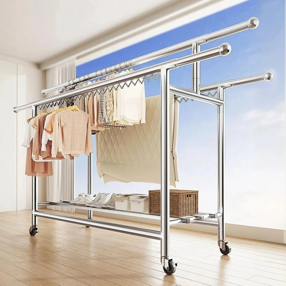 STYLE 格調 市場規格最頂-超荷重三桿H型曬衣架 不銹鋼 可移動 掛衣架 衣架桿 晾衣架 吊衣架 折疊曬衣架 伸縮曬衣架