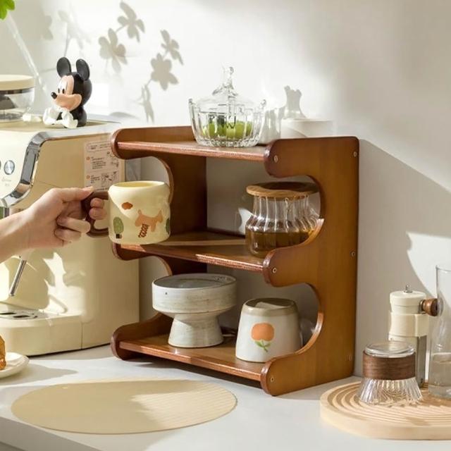 STYLE 格調天然楠竹弧形開放式三層檯面收納架杯架30*19*35cm 桌上置物架 居家擺飾 廚房收納 茶具收納 杯架