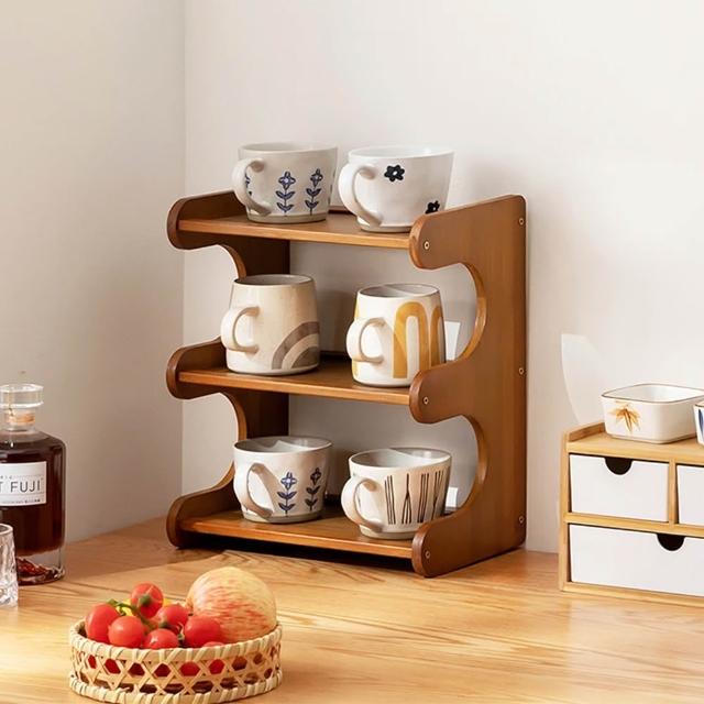 STYLE 格調天然楠竹弧形開放式三層檯面收納架杯架30*19*35cm 桌上置物架 居家擺飾 廚房收納 茶具收納 杯架