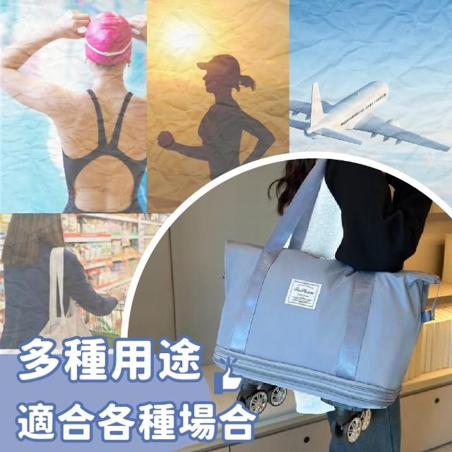 旅行包 帶滾輪旅行包(摺疊擴充旅行包 摺疊旅行包 行李袋 輪子旅行袋 折疊旅行袋 大容量多功能旅行包 滑輪包 乾濕分離包)
