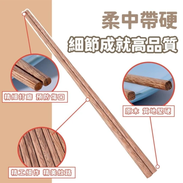 筷子 10雙入 實木筷 餐具(木頭 原木 木筷 木筷子 筷子組 木頭筷子 木頭餐具 木製餐具 環保餐具)