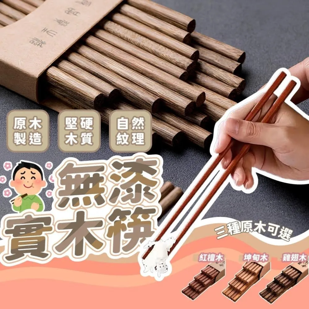 筷子 10雙入 實木筷 餐具(木頭 原木 木筷 木筷子 筷子組 木頭筷子 木頭餐具 木製餐具 環保餐具)