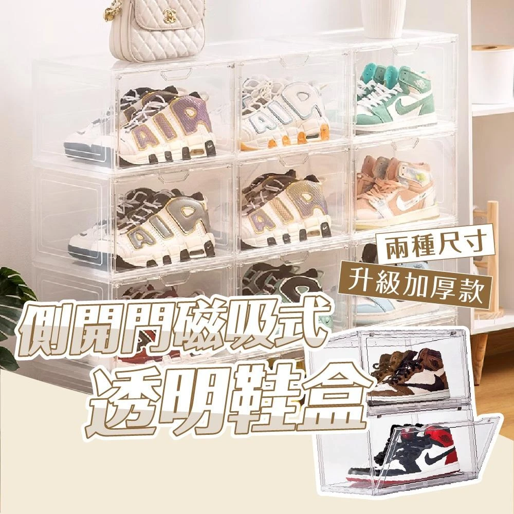透明鞋盒 側開鞋盒 鞋子收納 收納鞋盒(折疊鞋盒 壓克力鞋盒 磁吸鞋盒 球鞋收納盒 防塵鞋盒 收納盒 展示盒 全透明鞋盒)