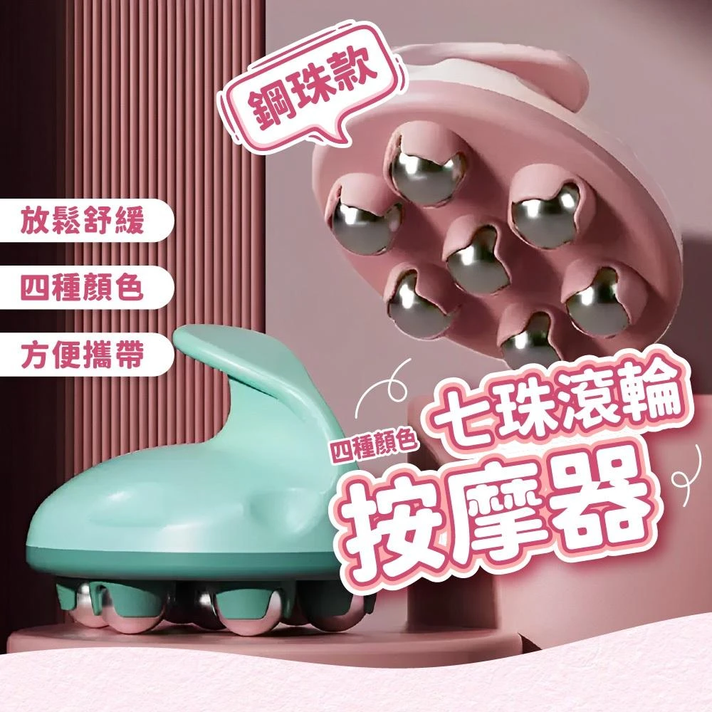 按摩棒 七珠滾輪 按摩器 肩頸按摩(肩頸按摩器 經絡 腿部按摩器 滾輪按摩 腹部按摩 肌肉放鬆 穴位按摩 滾背輪 按摩)