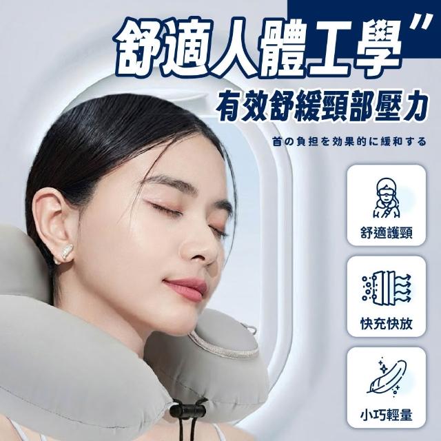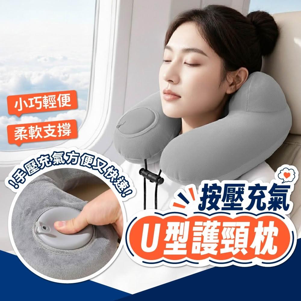 充氣U型枕 贈收納袋 按壓充氣 U型枕 U形枕 飛機枕 旅行枕 午睡枕 枕頭 護脖枕 飛機枕 駝峰形護頸枕 旅行 充氣枕