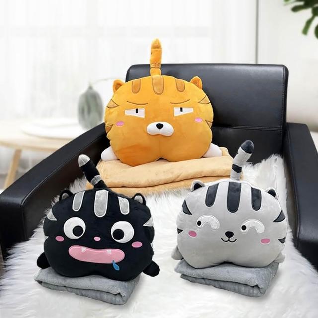 貓屁屁抱枕毯抱枕+冷氣毯 二合一 貓咪 抱枕 兩用 薄被 毯子 法蘭絨 二合一 彈力超柔 橘貓 黑貓 灰貓