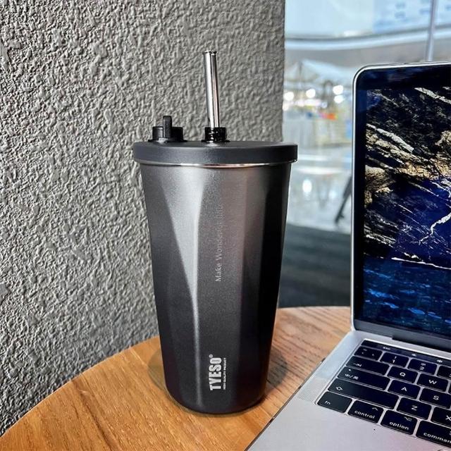 伸縮吸管304冰壩杯 吸管可收 雙層真空杯 隱藏吸管 手提漸層304冰壩杯冰壩杯 咖啡隨身杯 冰霸杯 保冰杯 冰壩杯