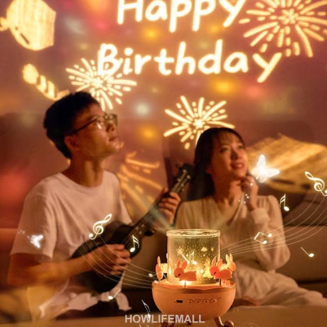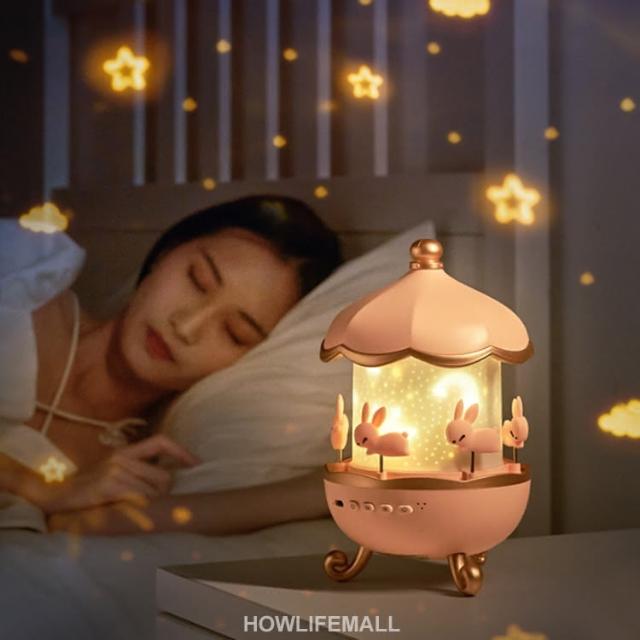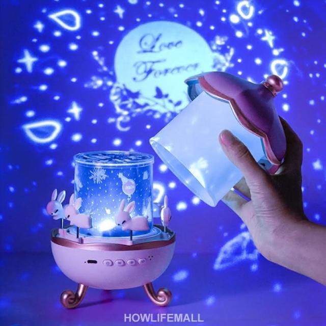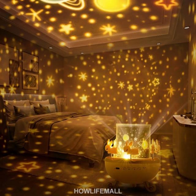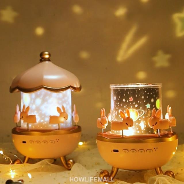 旋轉小屋投影小夜燈 🎵音樂款 12組幻燈片 投影燈 小夜燈 夜燈 兔子 旋轉木馬 3種色溫 夜燈