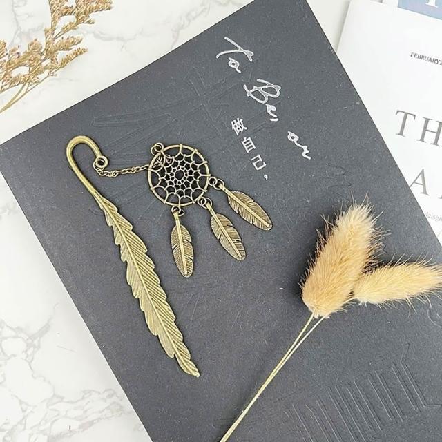 羽毛金屬書籤 書籤 金屬書籤 鄉村風 復古金屬 小鹿 羽毛 木馬 鑰匙 捕夢網 珍珠 交換禮物
