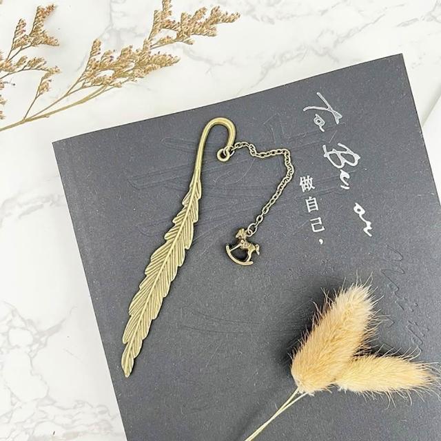 羽毛金屬書籤 書籤 金屬書籤 鄉村風 復古金屬 小鹿 羽毛 木馬 鑰匙 捕夢網 珍珠 交換禮物