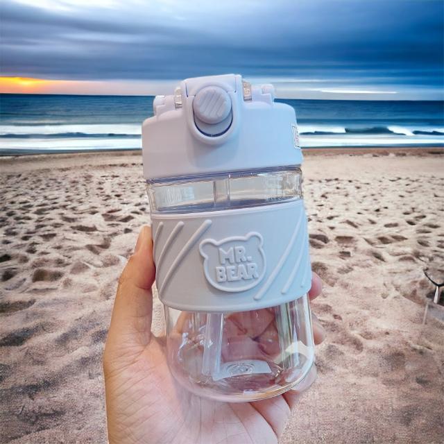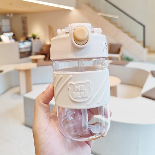 杯子 奶油小熊吸管隨身杯 隨行杯 小熊 吸管 手提功能 食品級材質 水壺 水瓶 水杯 玻璃杯