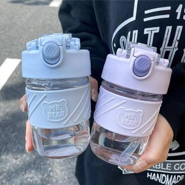 杯子 奶油小熊吸管隨身杯 隨行杯 小熊 吸管 手提功能 食品級材質 水壺 水瓶 水杯 玻璃杯
