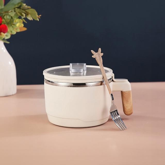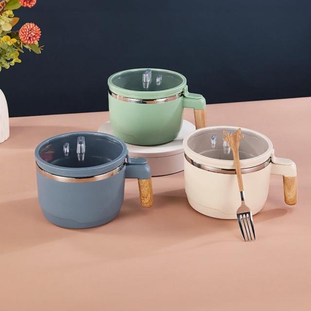 雙層不銹鋼泡麵碗 泡麵碗 易清洗 304不銹鋼材質 木質把手泡麵碗 泡防刮 保溫 北歐風泡麵碗 大泡麵碗