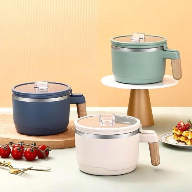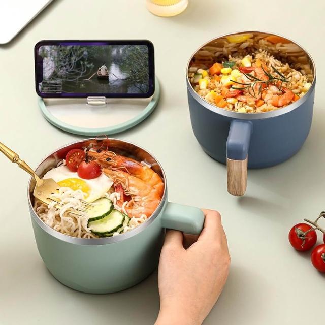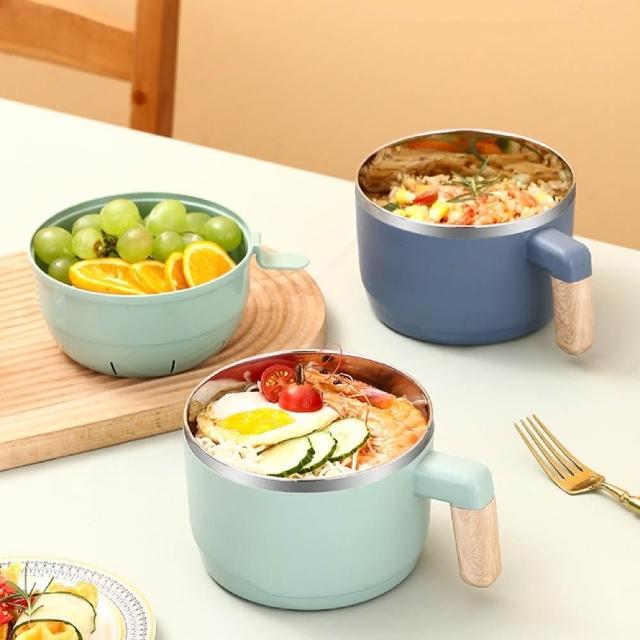 雙層不銹鋼泡麵碗 泡麵碗 易清洗 304不銹鋼材質 木質把手泡麵碗 泡防刮 保溫 北歐風泡麵碗 大泡麵碗
