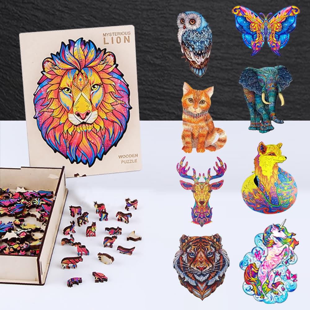 木質變形拼圖-L號木盒曼陀羅 隱藏拼圖 椴木 木盒 3d拼圖 動物拼圖 獅子 獨角獸 蝴蝶 魚 大象 狐狸 貓頭鷹