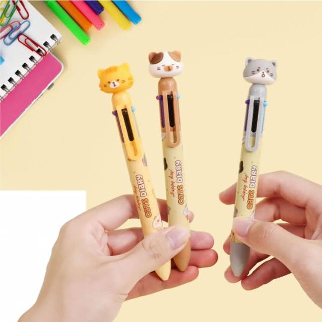轉轉六色貓咪造型筆圓珠筆 簽字筆 造型筆 原子筆 貓咪筆 按動筆 卡通按壓筆 可愛貓咪筆 文具 畢業季 開學季
