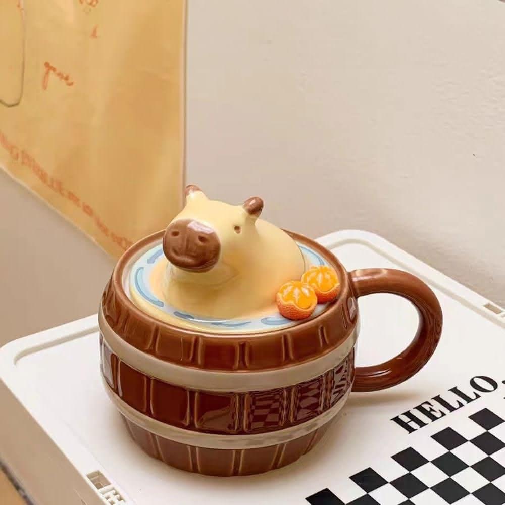 泡湯中的水豚君馬克杯卡皮巴拉馬克杯 水豚君馬克杯 立體水杯 水杯 茶杯 餐具 杯子 交換禮物 聖誕節 畢業禮物