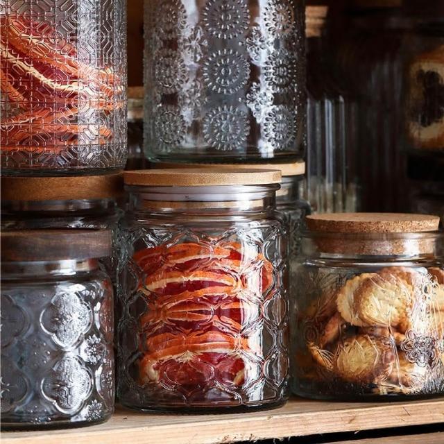 海棠花玻璃罐 壓花浮雕玻璃罐 收納罐 密封罐 儲存罐 復古零食收納罐 零食罐 玻璃罐 復古玻璃罐 窗花玻璃罐 食物收納罐