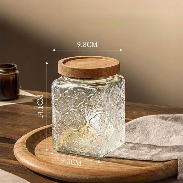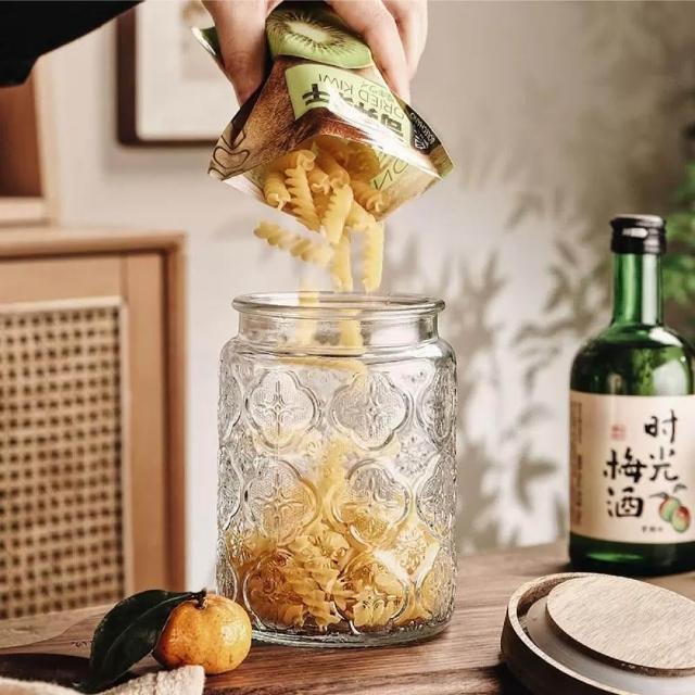 海棠花玻璃罐 壓花浮雕玻璃罐 收納罐 密封罐 儲存罐 復古零食收納罐 零食罐 玻璃罐 復古玻璃罐 窗花玻璃罐 食物收納罐