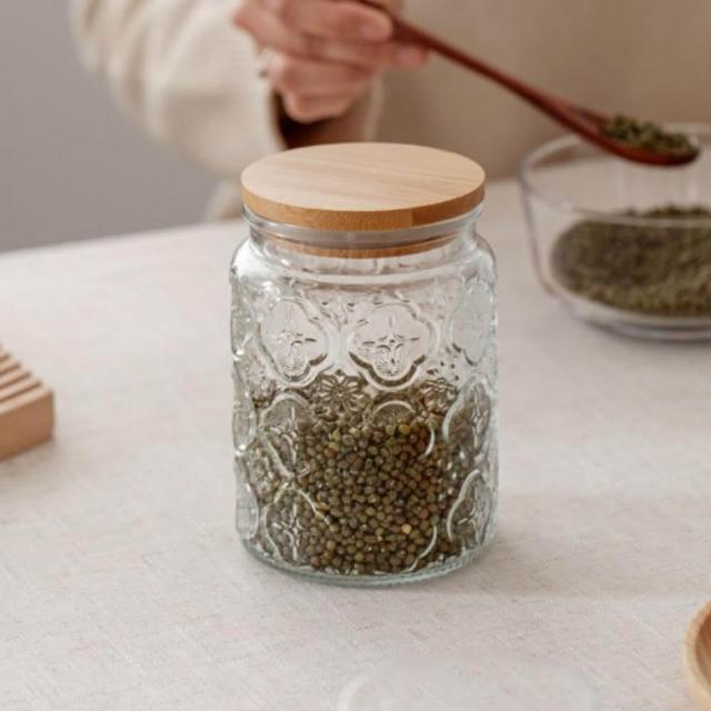 海棠花玻璃罐 壓花浮雕玻璃罐 收納罐 密封罐 儲存罐 復古零食收納罐 零食罐 玻璃罐 復古玻璃罐 窗花玻璃罐 食物收納罐