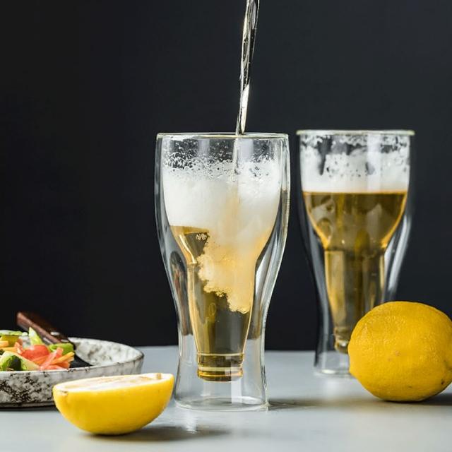 雙層啤酒杯酒瓶反轉造型 生日禮物 交換禮物 創意翻轉啤酒杯 啤酒杯 酒杯 歡慶 同樂 趣味
