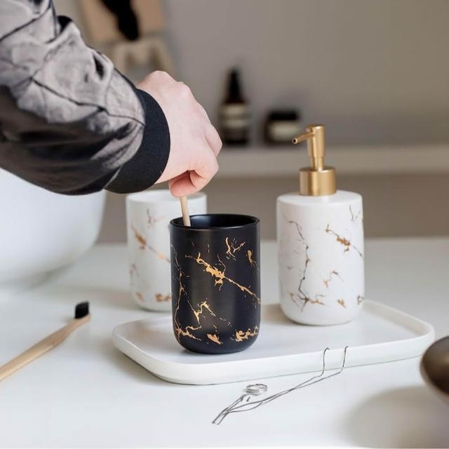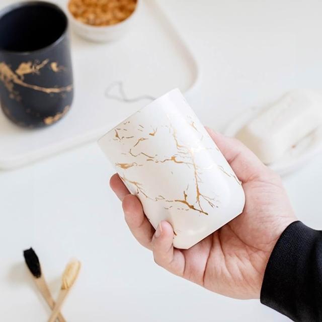 奢華大理石紋陶瓷漱口杯造型杯 漱口杯 陶瓷杯 霧面大理石花紋水杯 洗漱杯 居家美學 居家精品 北歐大理石紋漱口杯
