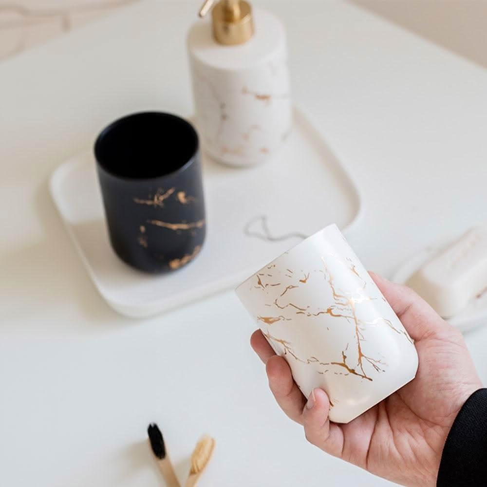 奢華大理石紋陶瓷漱口杯造型杯 漱口杯 陶瓷杯 霧面大理石花紋水杯 洗漱杯 居家美學 居家精品 北歐大理石紋漱口杯
