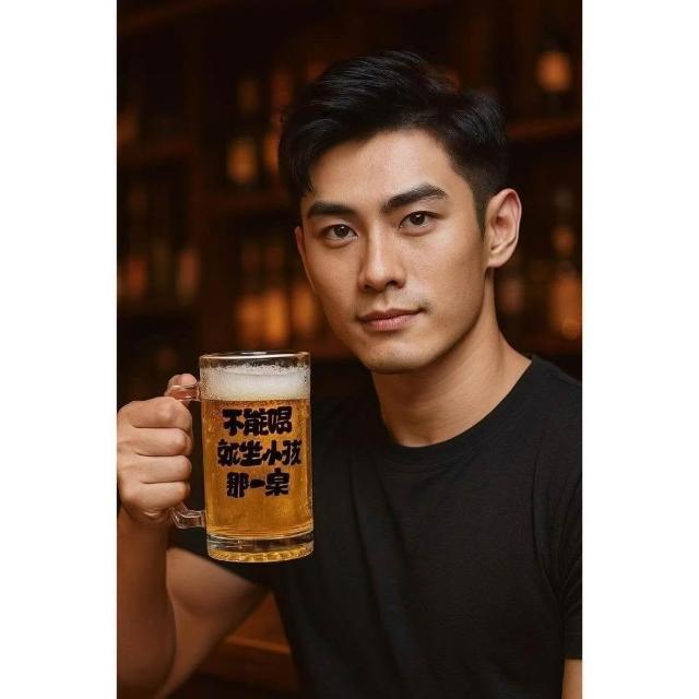 玻璃啤酒杯 創意文字 500ML 啤酒杯 派對酒杯 握把玻璃杯 酒杯 馬克杯 趣味文字