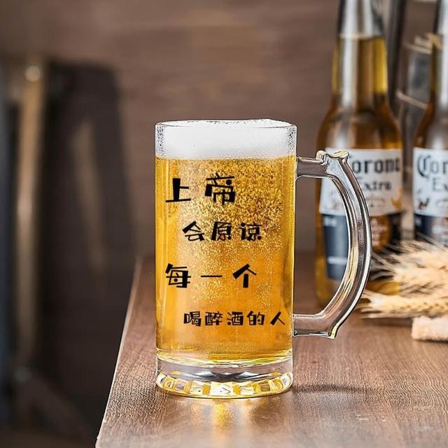 玻璃啤酒杯 創意文字 500ML 啤酒杯 派對酒杯 握把玻璃杯 酒杯 馬克杯 趣味文字