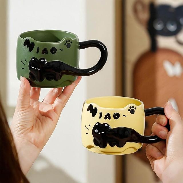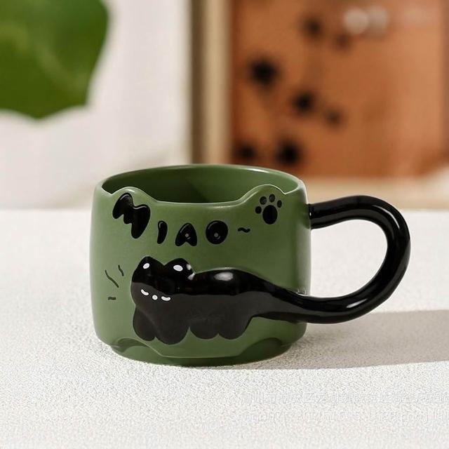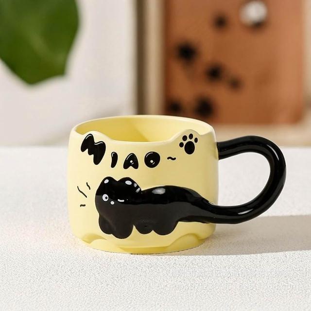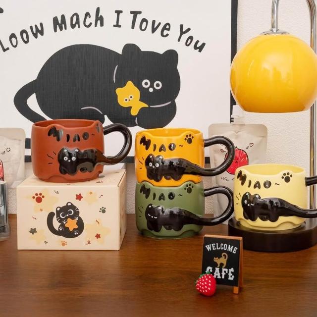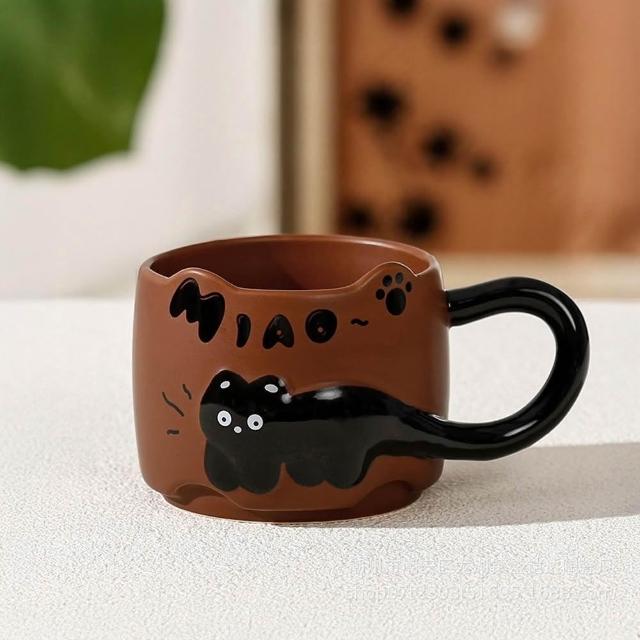 翹尾吧小黑貓馬克杯 馬克杯 水杯 貓咪造型馬克杯 陶瓷 杯子 禮物 茶杯 熱茶杯 交換禮物 聖誕節 生日禮物