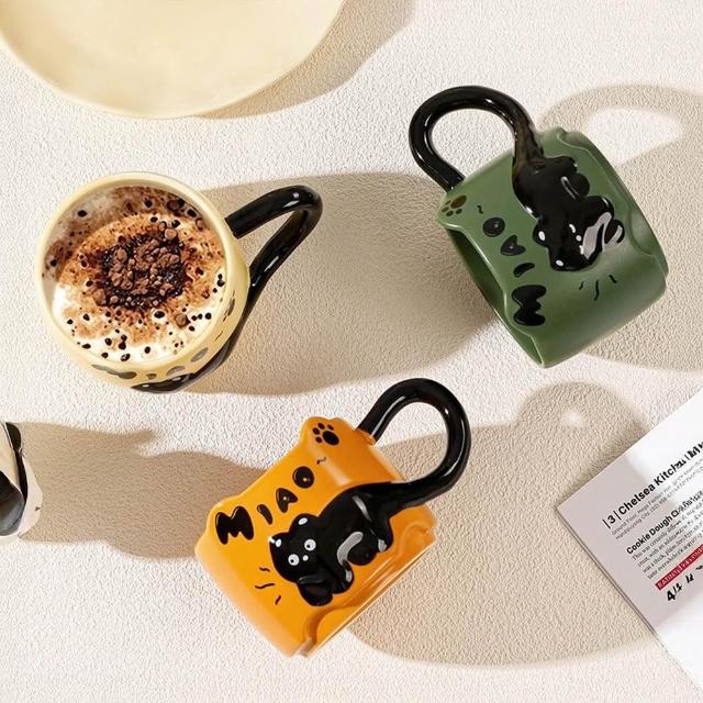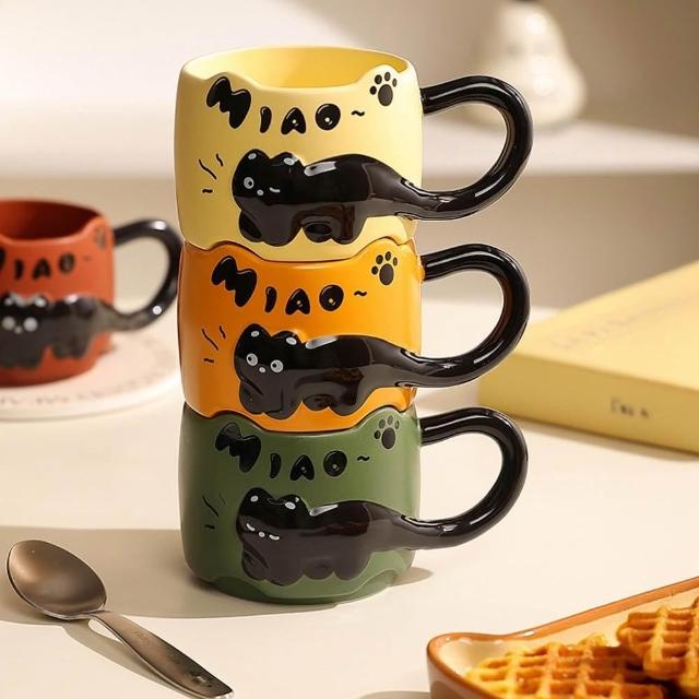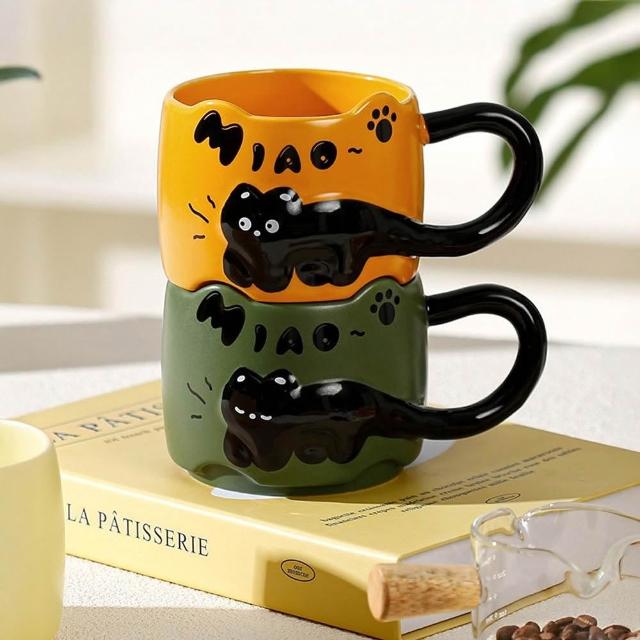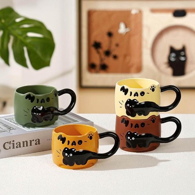 翹尾吧小黑貓馬克杯 馬克杯 水杯 貓咪造型馬克杯 陶瓷 杯子 禮物 茶杯 熱茶杯 交換禮物 聖誕節 生日禮物